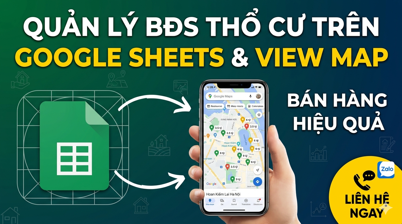 Bạn đang sở hữu hàng trăm nguồn nhà nhưng lại “rối tung” trong việc tra cứu? Hãy quên đi những file Excel khô khan. Chúng tôi mang đến giải pháp quản lý bất động sản bằng Google Sheets kết hợp View Map bản đồ trực quan – Biến dữ liệu thành một ứng dụng chuyên nghiệp ngay trên điện thoại của bạn.